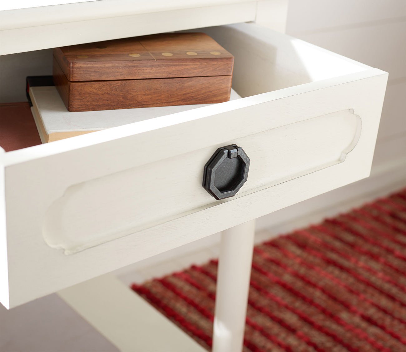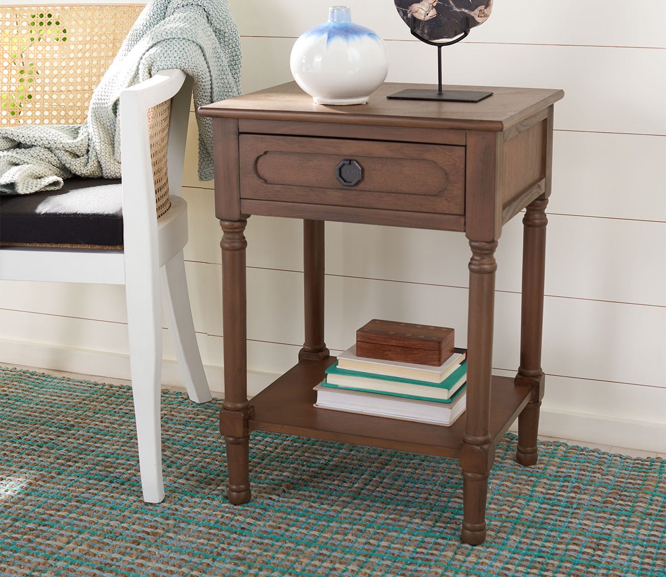 Stage a vintage-inspired home with the modern-day timelessness of Safavieh’s Allura 1-Drawer Accent Table, available in a distressed white, black, or brown finish. With a 26-inch height and 19-inch wide rectangular shape, this decorative side table makes an elegant addition to your living room, bedroom, or den with its classic contemporary design. Carved details provide intricate detailing, while the single drawer offers discreet storage.