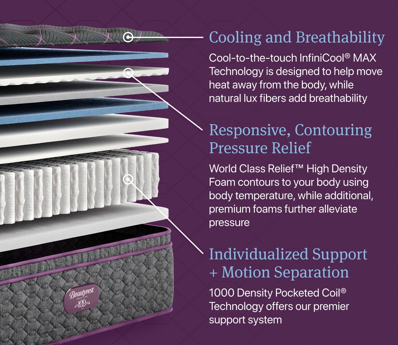 - Beautyrest® ActiveResponse™ MAX Memory Foam: Provides upgraded, contouring comfort designed to help alleviate aches and pains.