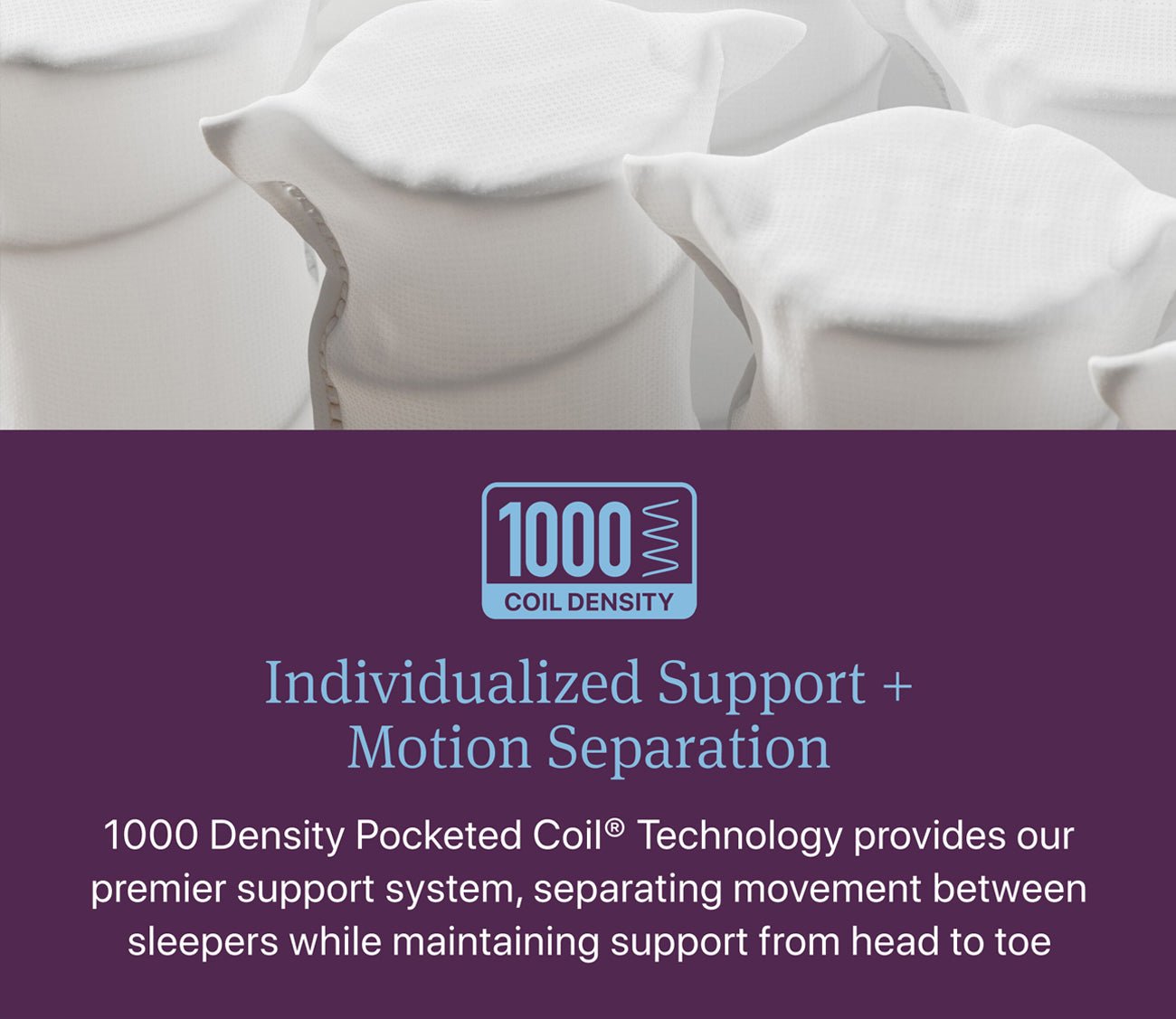 - 1000 Density Pocketed Coil® Technology: Premier support system provides individualized support and motion isolation properties in any sleeping position.