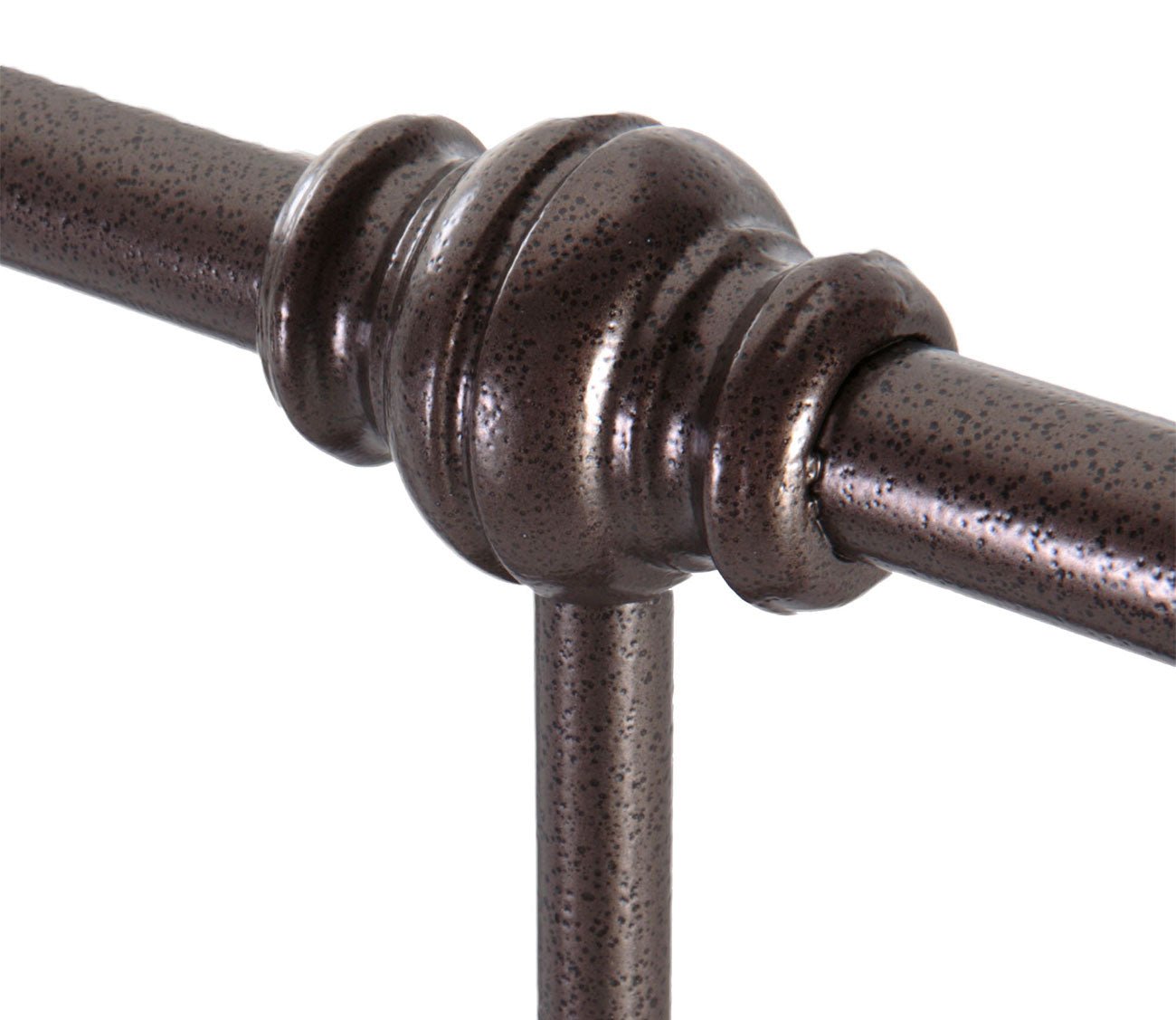 - Constructed of sturdy carbon steel metal in a hammered brown finish.