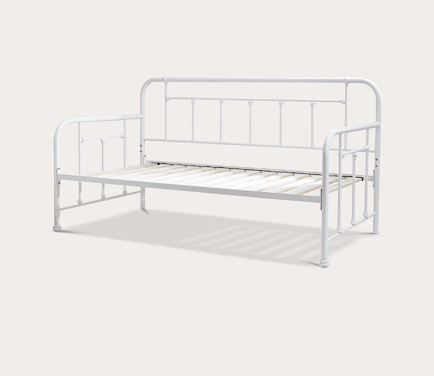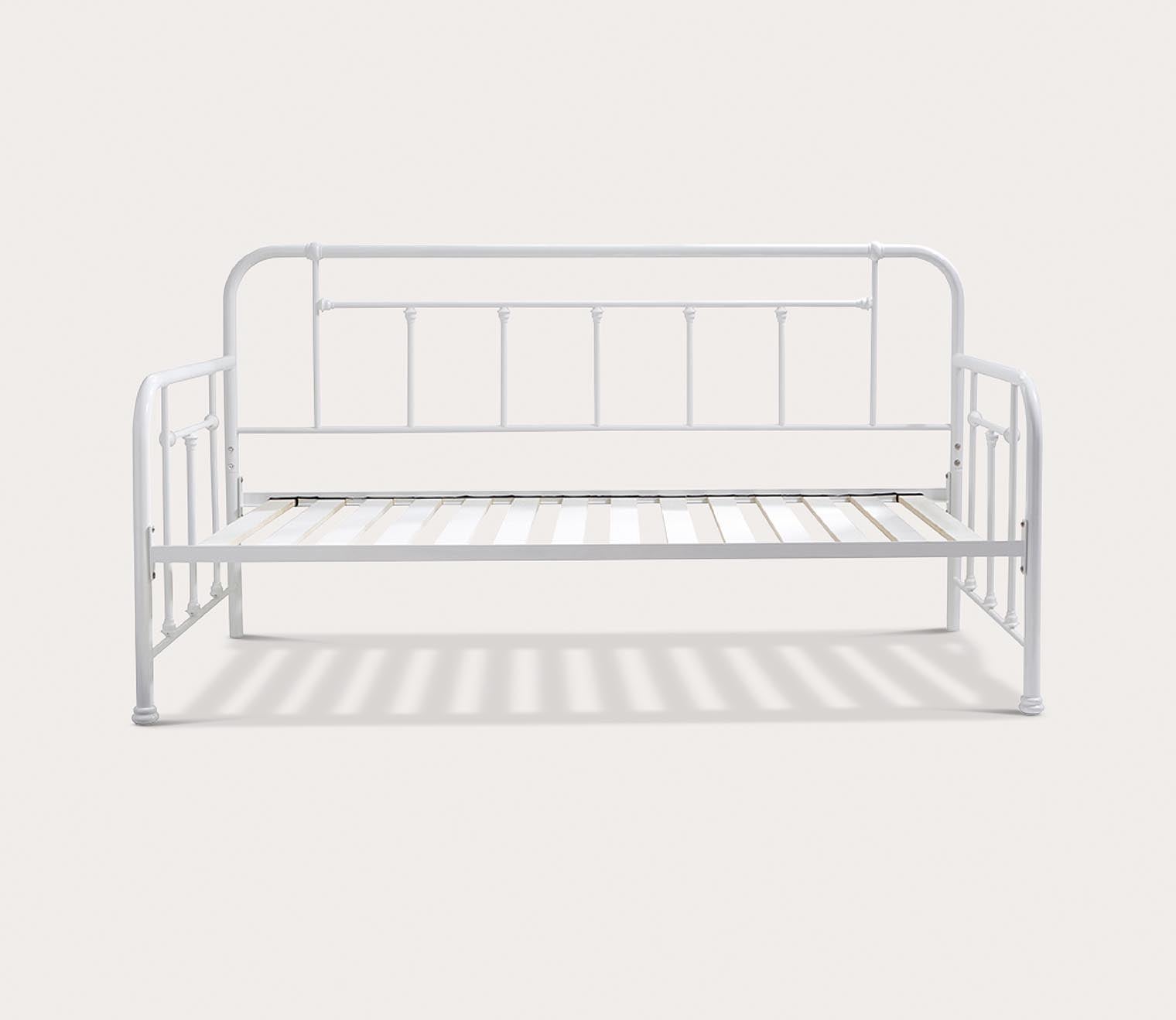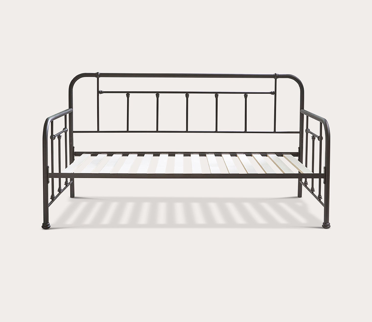 Introduce transitional sophistication to your space with the versatile design of our City Mattress Noah Metal Daybed— ideal for sitting, sleeping, or relaxing. Perfect for a den, home office, guest room, or child’s bedroom, this daybed frame exudes industrial charm with a carbon steel construction in a textured black or white finish. The openwork silhouette creates a light, airy feel, while the curved side rails seamlessly morph into the top rail for contemporary flair alongside detailed castings throughout.