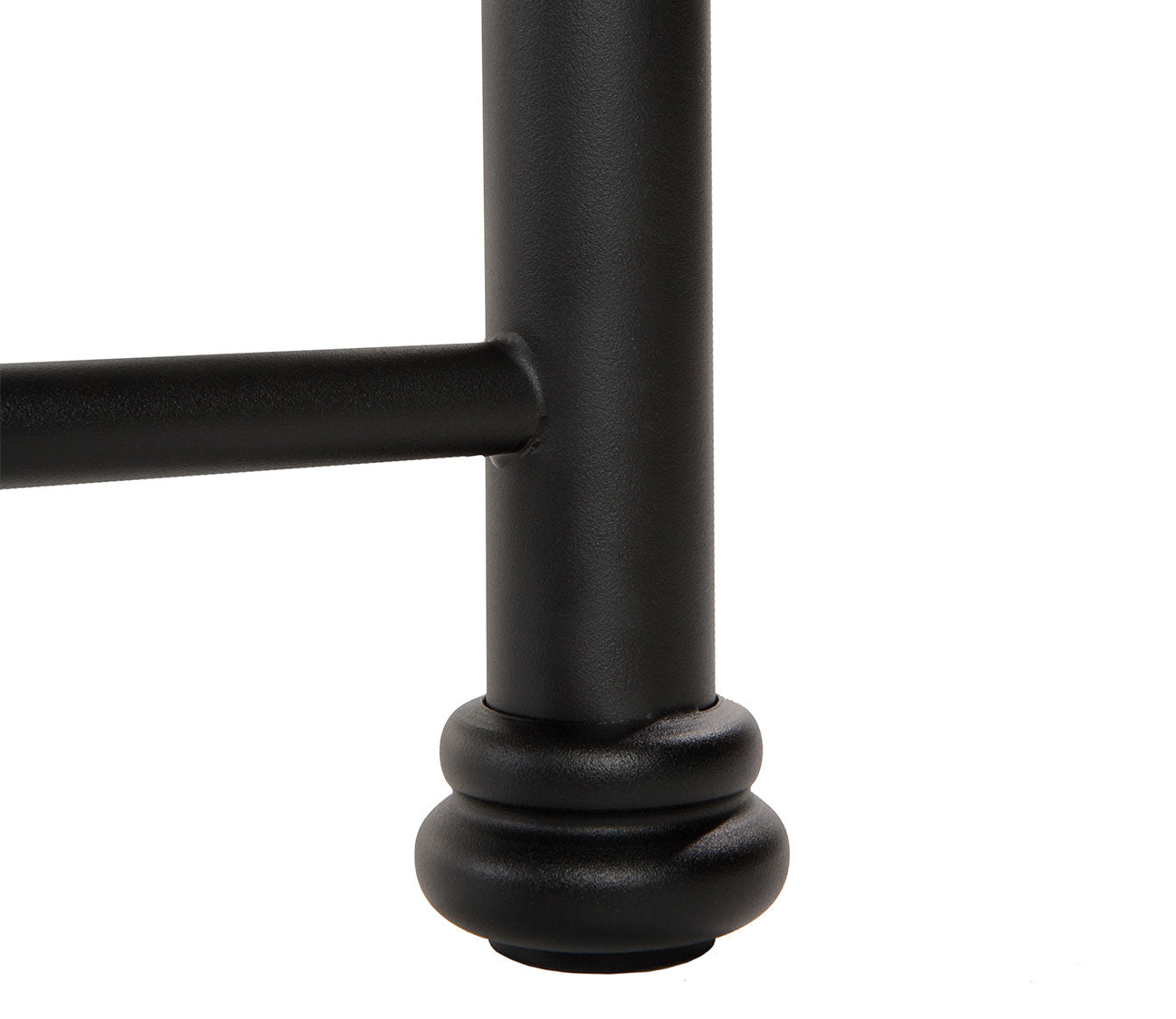 - Constructed of sturdy carbon steel metal in a textured black finish.