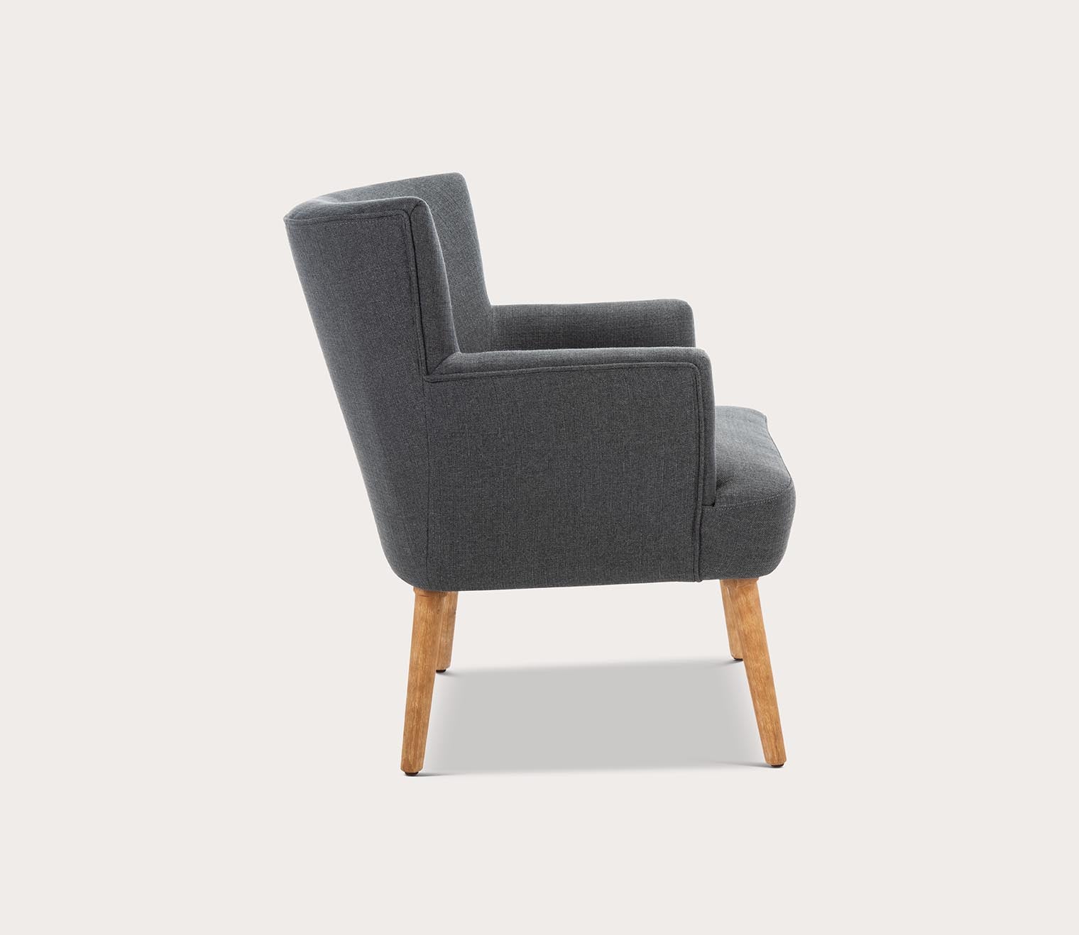 Transitional style meets sophisticated design with Safavieh’s Delfino Accent Chair, bringing a subtle mid-century modern flair to your seating arrangement. Reflecting its retro inspirations, this upholstered armchair features a sculpted wingback silhouette and tapered wooden legs. A contemporary style icon with comfortable cushioning and soft linen-like fabric— choose from the white or dark grey colorway to best fit your aesthetic.