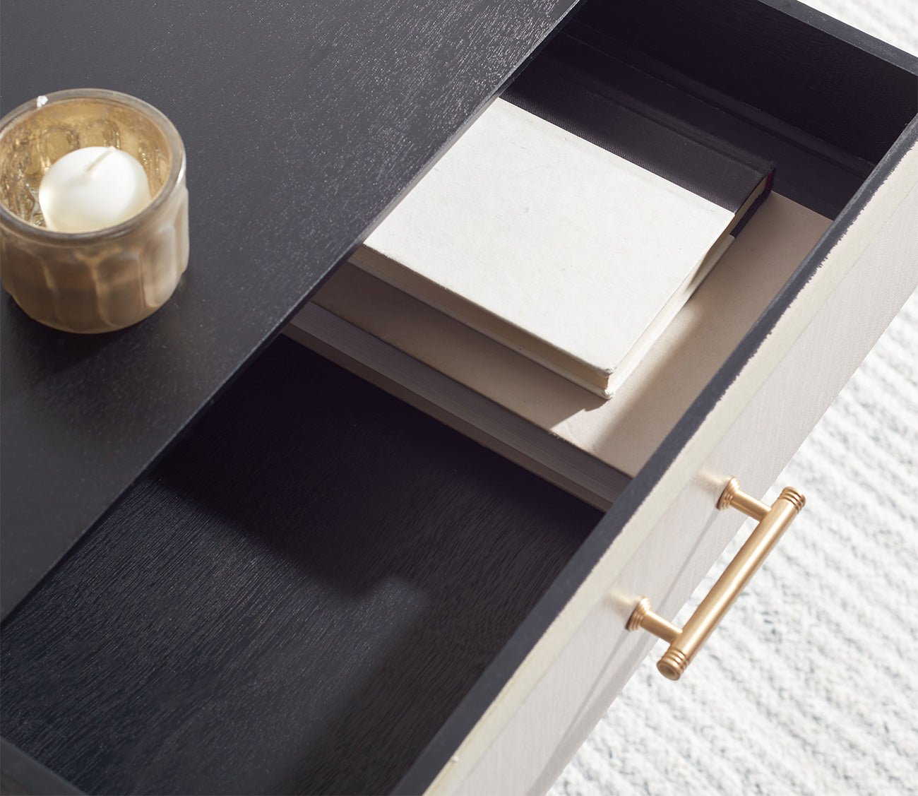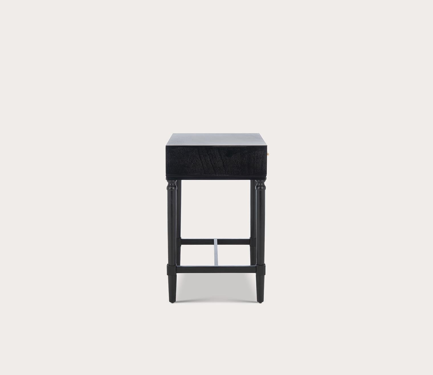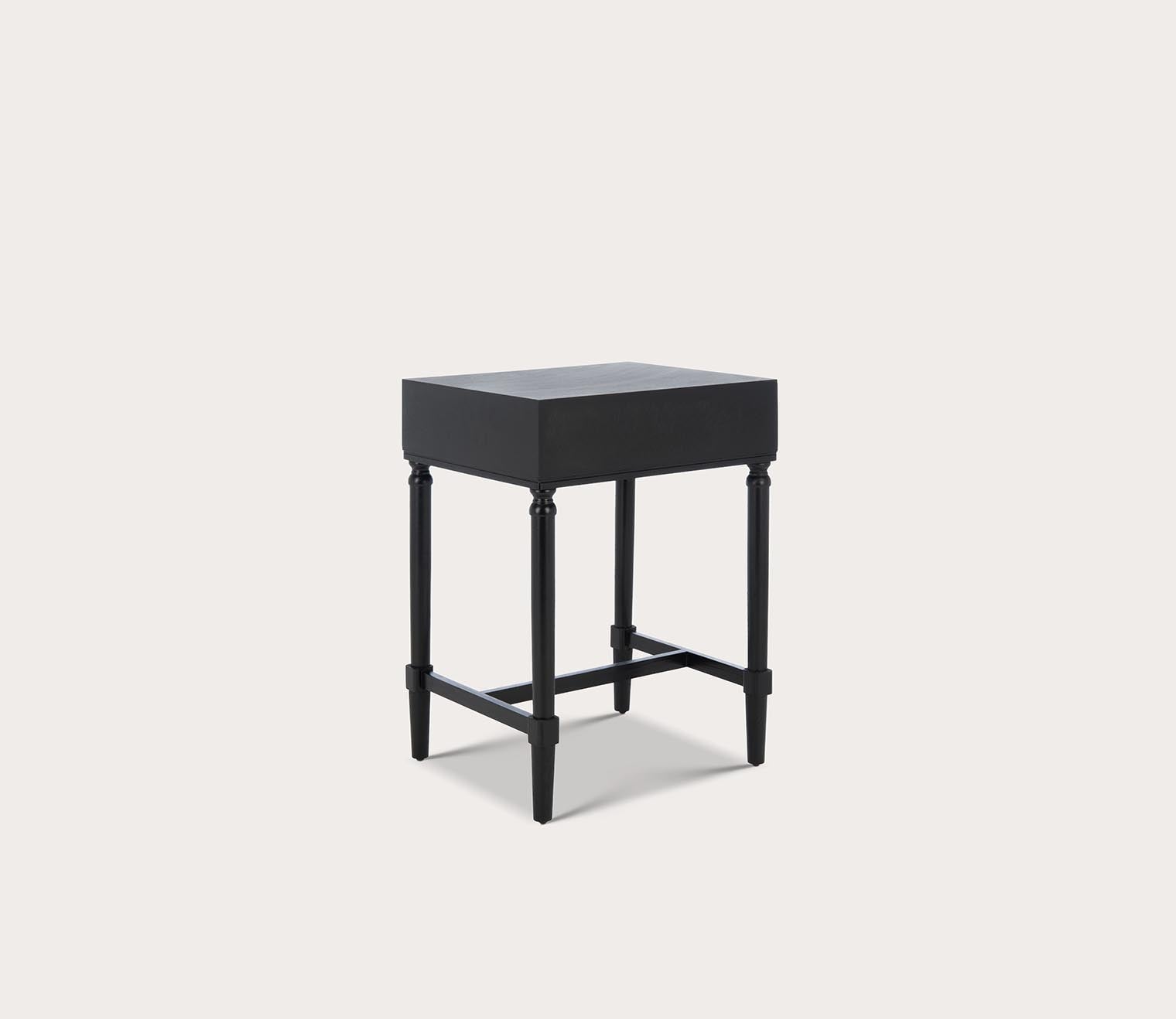 Gracefully designed with classic elegance, Safavieh’s Estella 1-Drawer Accent Table adds chic style and discreet storage to your space. With a fresh look and traditionally inspired carved details, this 19-inch-wide side table features a rectangular shape with an open bottom frame and turned legs. Available in a black or white finish— the beautifully juxtaposed, two-toned style is complete with a sleek gold-finished metal bar pull on the contrast drawer front.