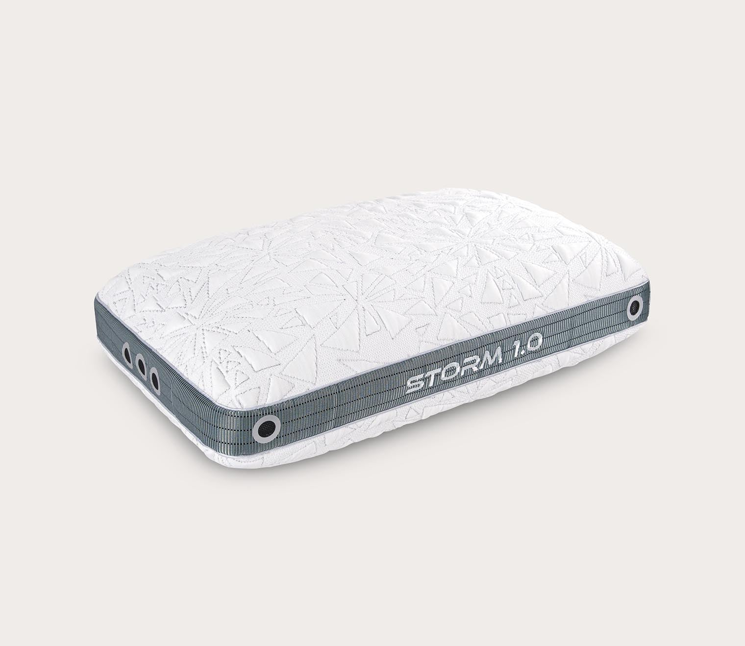 Consistently wake up on the cool side of the pillow with BedGear’s Storm Performance Pillow, available in standard/queen or king size and your choice of four different loft levels. With conforming, personalized support, this cooling bed pillow features a medium-firm comfort level and a dual-sided, reversible design that’s plush at one side with shredded foam and silk-like fibers, then flips to a pressure-relieving memory foam crown at the opposite. Breathable mesh side panels and air vents create continuous airflow throughout the pillow, while the washable, zip-off fabric cover instantly cools and dissipates body heat for an ideal sleep temperature all night.