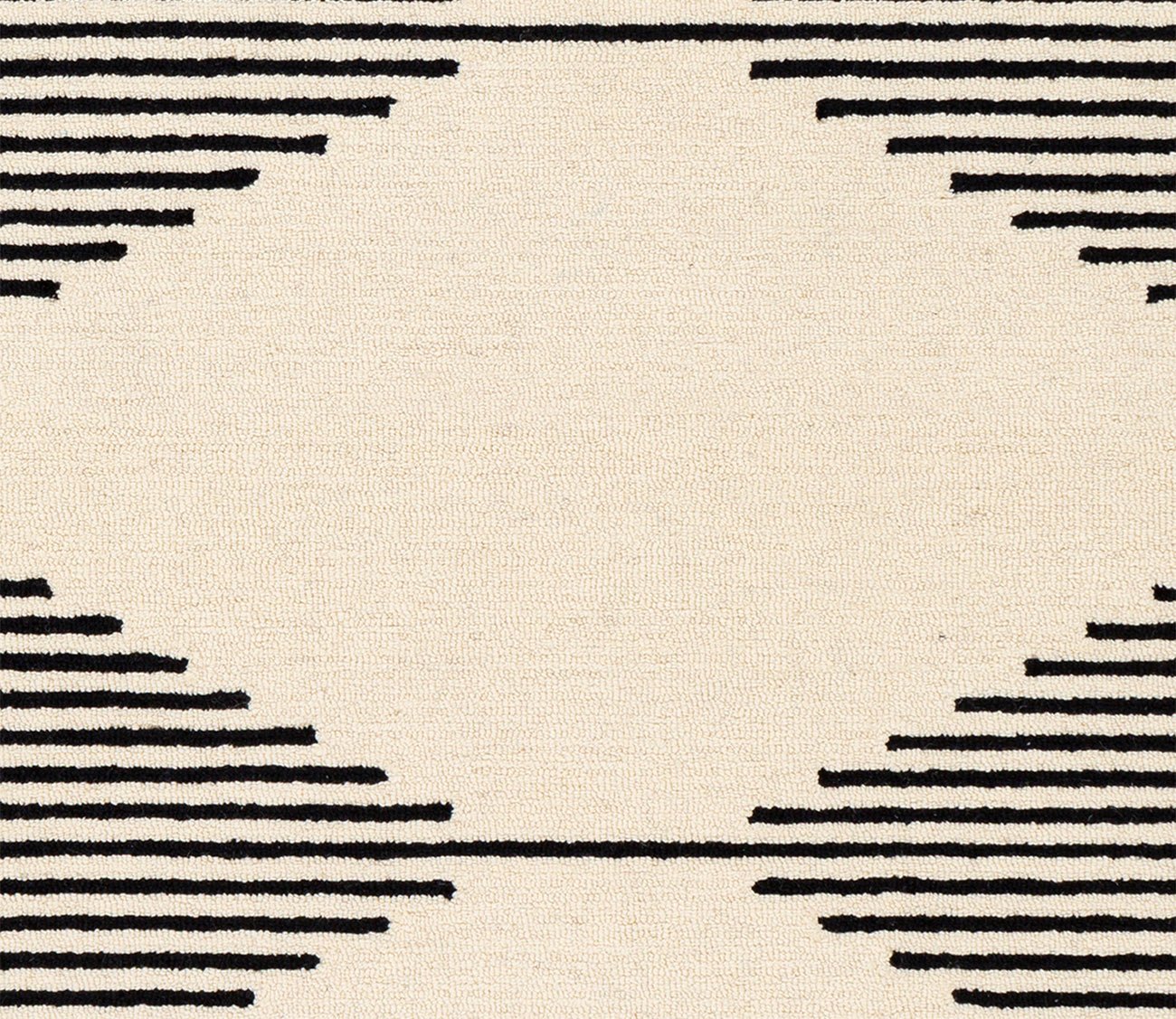 High-contrast lines form a geometric design for a modern look on Surya’s Granada Looped Area Rug that’s sure to make a stunning centerpiece in virtually any room. Durably designed for lasting quality, this hand-tufted area rug features a 10 x 14 size with 100-percent wool yarns and a looped pile. Complete with a canvas backing— the black and beige color palette and diamond-shaped pattern fit various styles of interiors.
