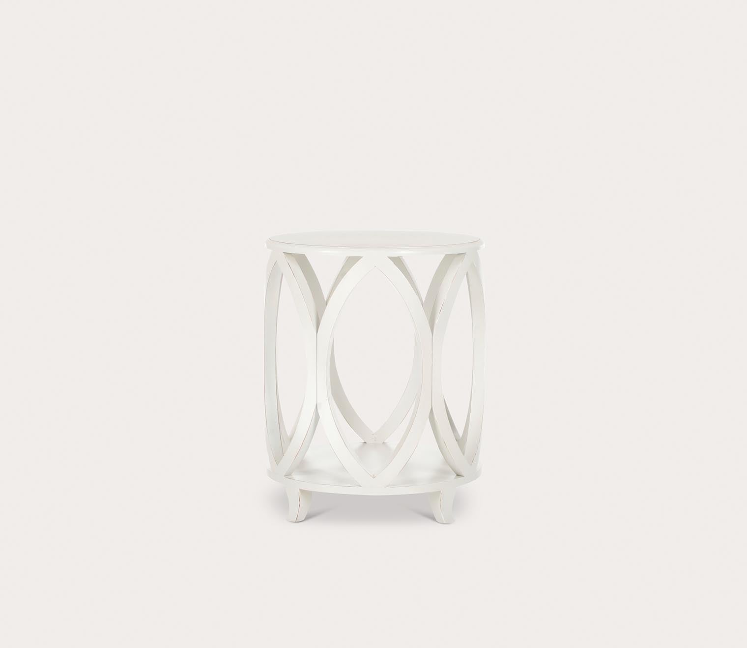 A decorative and functional addition to virtually any room, Safavieh’s Janika Accent Table brings depth and dimensional interest to minimalist furnishings. Available in an off-white, ash grey, or teal blue finish, this 19.8-inch round side table features a quality wood construction with a cutout hollow frame showcasing marquise geometric shapes. Chic and stylish beside an armchair or sofa— try this accent furniture piece topped with a novelty lamp or stacks of books.