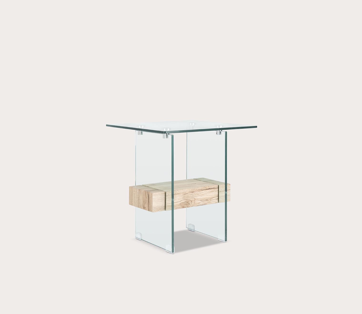 Visually intriguing in contemporary spaces, Safavieh’s Kayley Accent Table is styled after the display tables found in London’s Tate Museum. Unassuming with high-end elegance, this decorative side table features a 19.7-inch shape with a clean-lined silhouette crafted from crystal clear glass. The thick wood shelf brings stark contrast with a floating look in a natural or black oak finish.