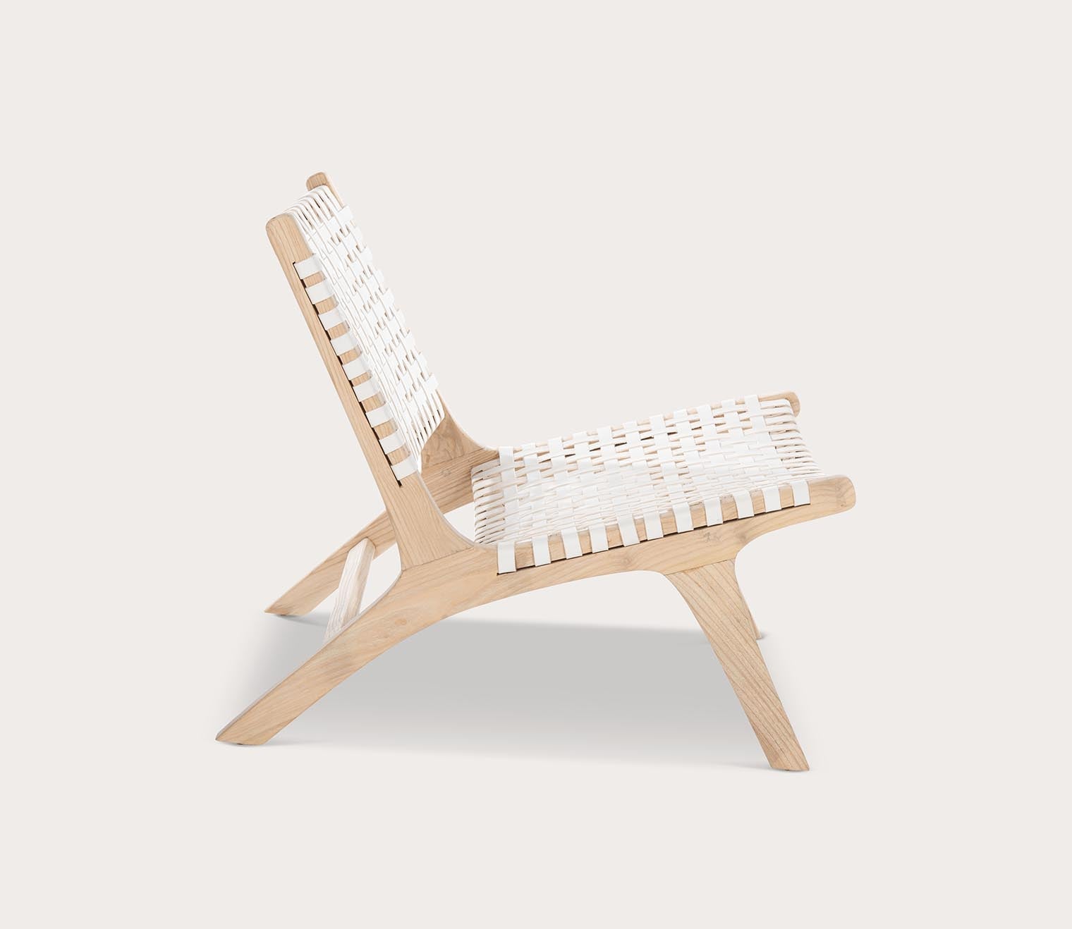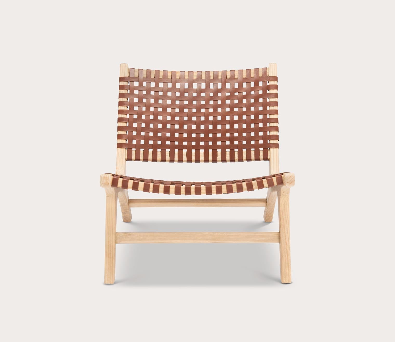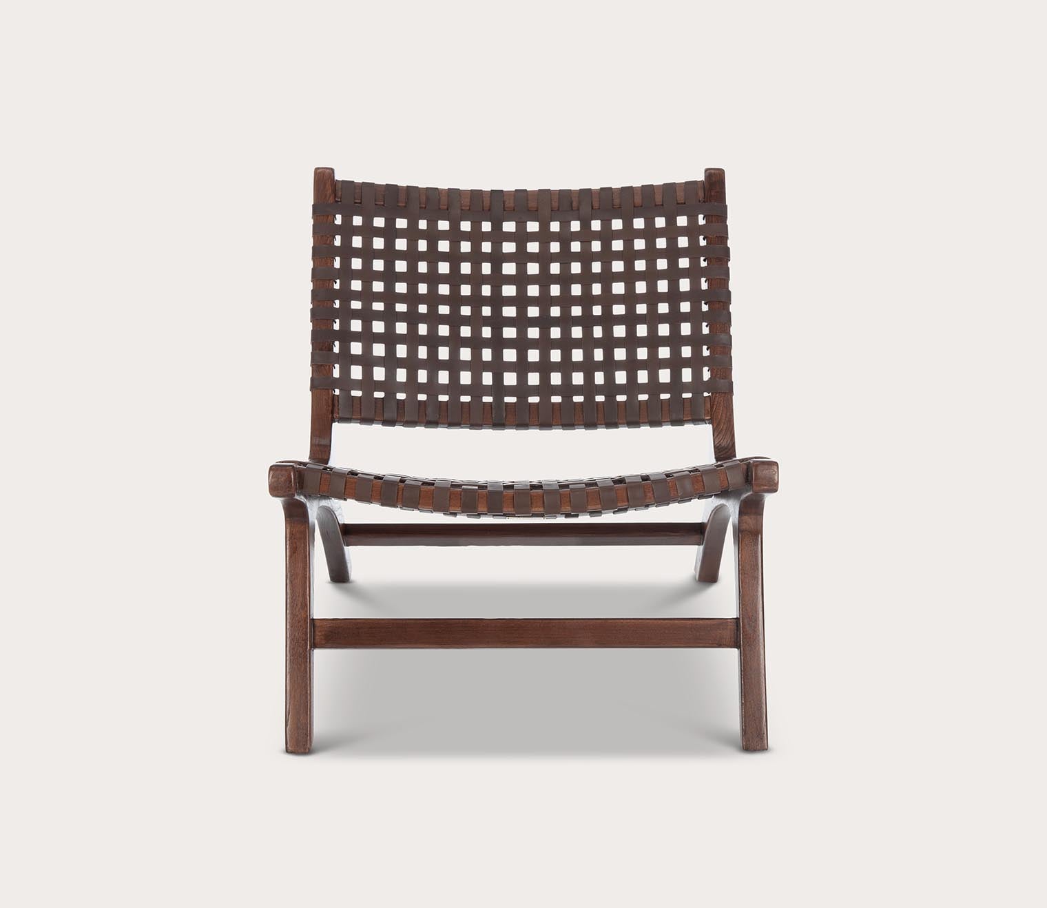 Mid-century modern meets contemporary design with the cutting-edge style of Savavieh’s Luna Accent Chair. Featuring a low-slug seat with a comfortably curved silhouette— this armless lounge chair flaunts a finely crafted wood frame in a natural, brown, or cognac finish. Including a reclined back for extra laidback appeal, the intricately woven genuine leather panels add visually intriguing, coastal allure.