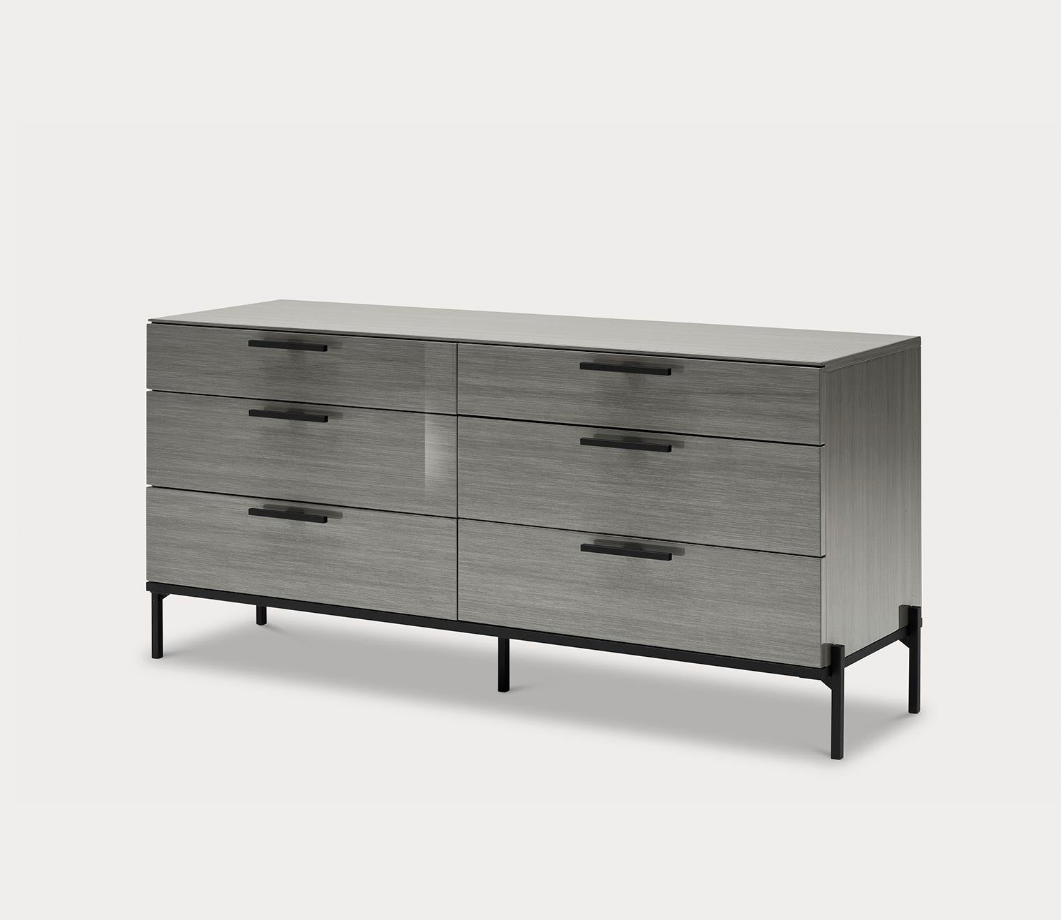 - Two-drawer nightstand, 6-drawer dresser, and 5-drawer chest with soft-close glides.