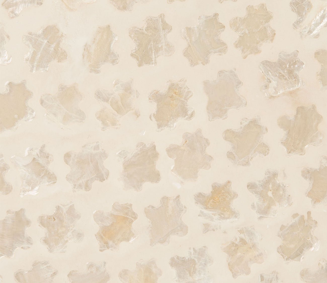 - Smooth curves and subtle angles with an inlay of white capiz shells in a Moroccan tile trellis.