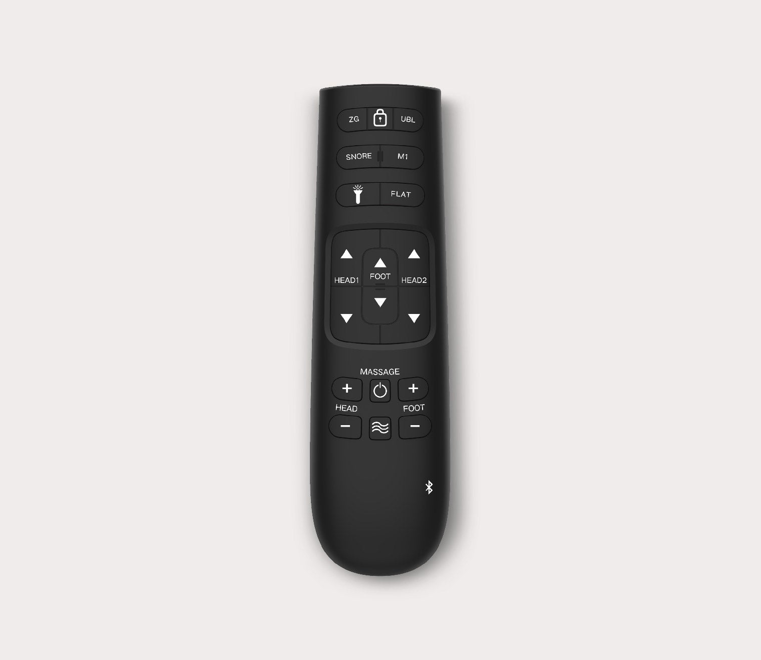 - Wireless Remote: Wireless, Bluetooth, 19-button remote with head and foot articulations, reprogrammable anti-snore, zero gravity, and one customizable position. Includes massage, flashlight, one-touch flat button, and safety lock.