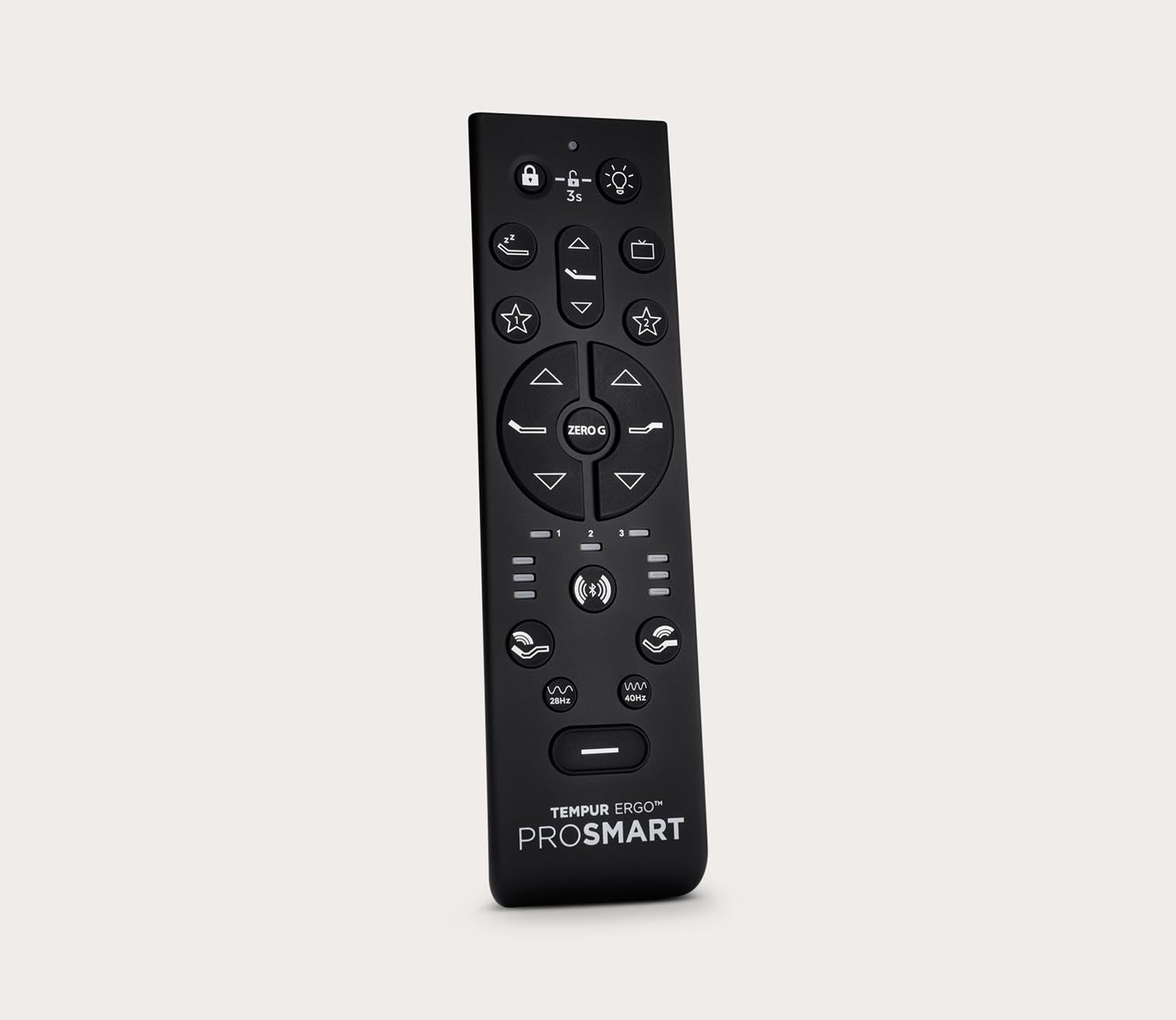 - Wireless Remote: Head Position, Foot Position, Zero Gravity, Child Lock, LED Under Bed Lighting, QuietMode™, TV-in-Bed Position, Favorite #1, Favorite #2, Lumbar Support, Massage Mode/Sound Mode, Head Zone Massage, Foot Zone Massage, Low-Frequency Massage Setting, High-Frequency Massage Setting, One-Touch Flat