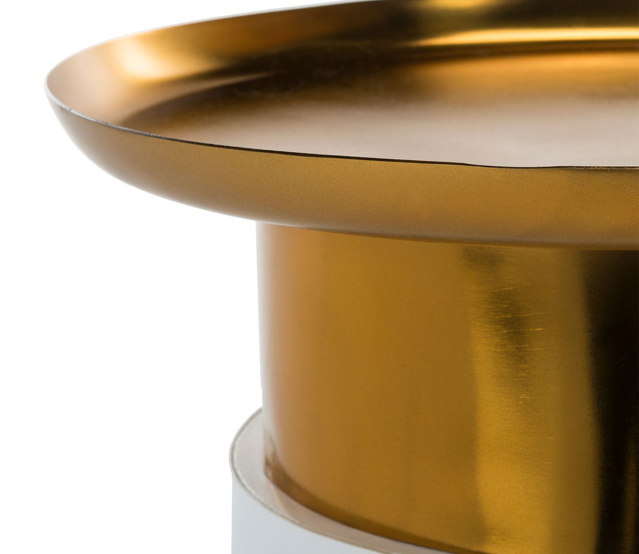 Chic and modern style with necessary function, Safavieh’s Zenith Tray Top Side Table offers elegant intrigue and a secure spot to set your book or beverage. Making entertaining a breeze in virtually any living room, this 16-inch round decorative side table features a polished white base that supports a gold-finished tray top. Effortlessly complementing a wide variety of interior aesthetics and color palettes— the durable frame ensures longevity beside your favorite chair or couch.